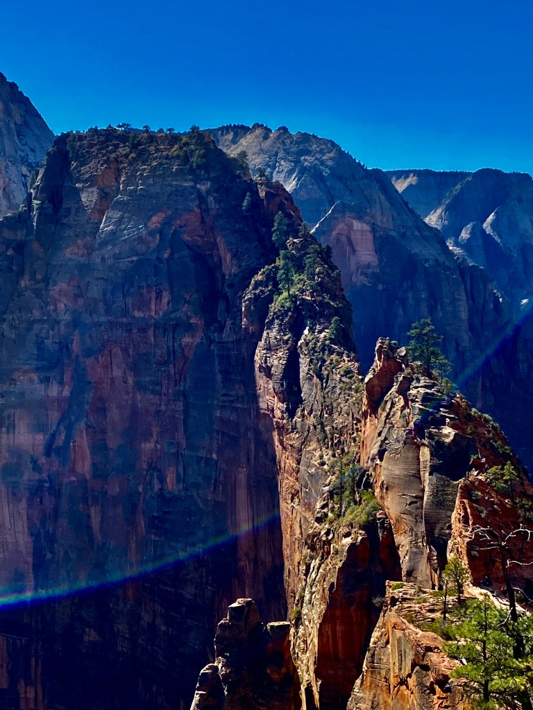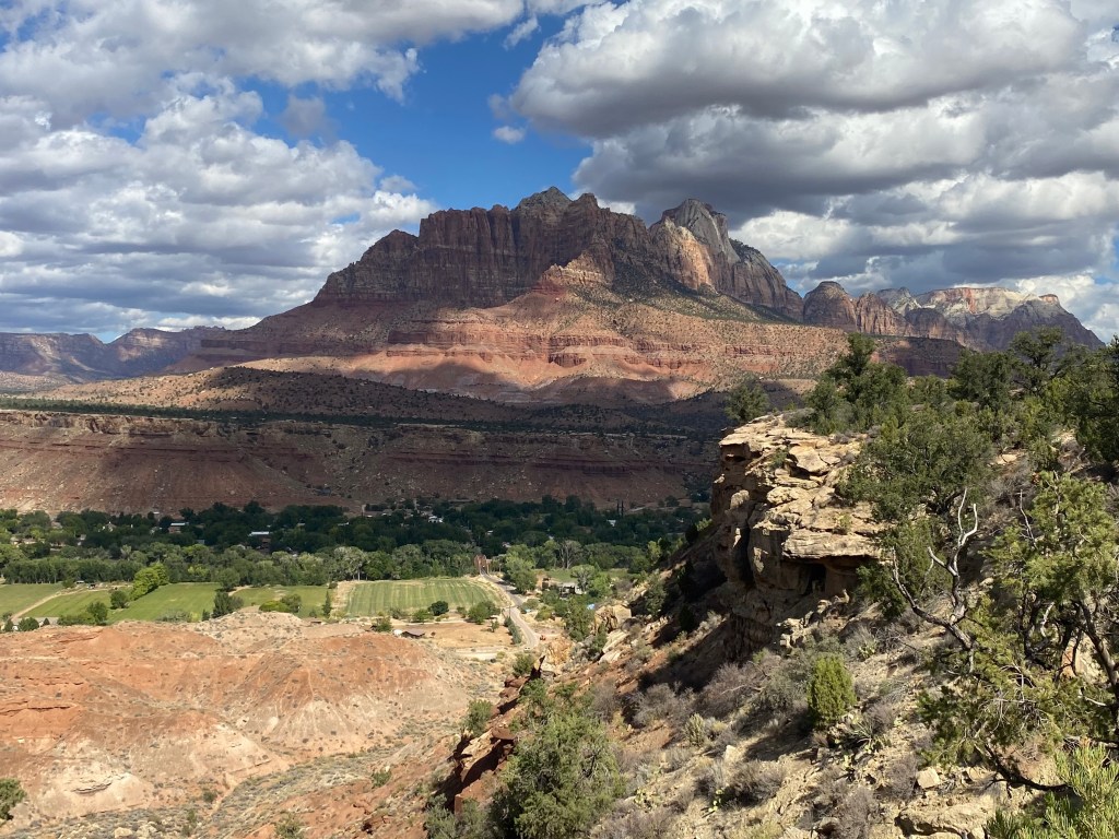 Patti and I did make it into the park though. We hiked Angel’s Landing. No, we didn’t put in for the lottery to go up the sketchy trail with the chain link rail, but we did hike to Scout’s Landing which allowed us to see the whole thing.