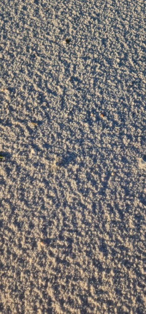 The sand squeaks. In this picture, there is a little white crab. Almost invisible. Can you see it?