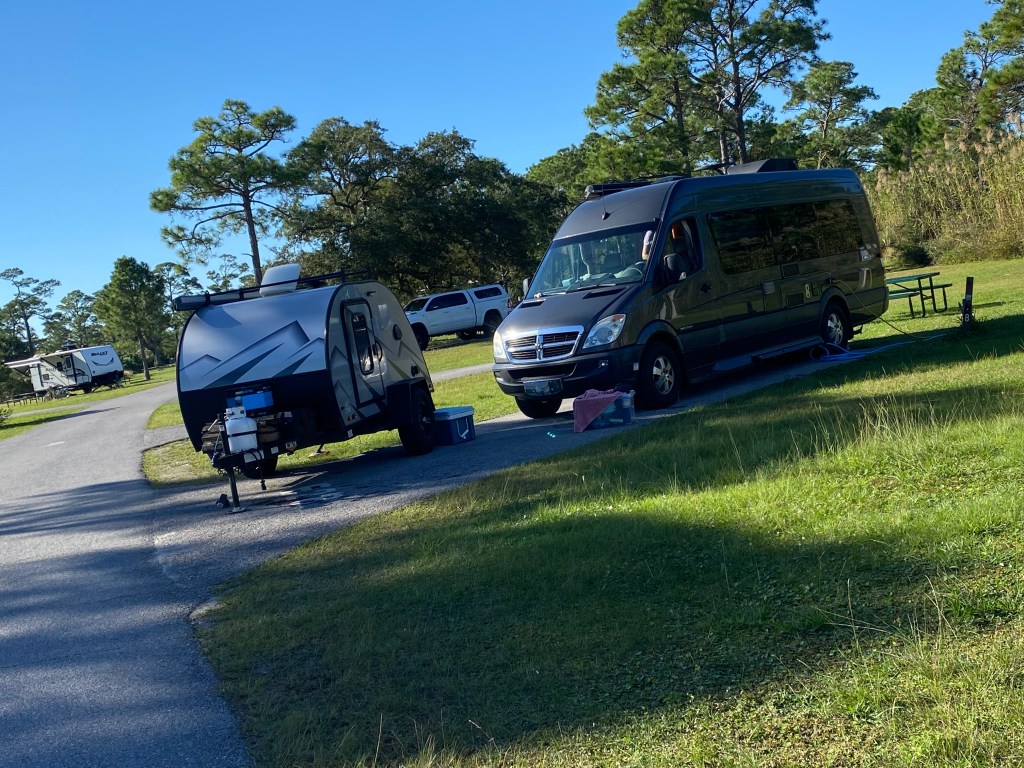 Melanie drives a Sprinter van, and she decided to join me for a couple of weeks. She will admit that she was a little concerned about traveling with someone from Colorado, that we might have different views on certain subjects, but Nope! We have found that we think a lot a like and we’ve been having a blast! We had no idea where we wanted to go, so we went with the boys to Pensacola. I turned off Cliff, and followed Dave – it was a little weird not having my Australian friend telling me where to go, but Dave did great! I had my first experience at Buccees – craziness, and sleeping in the parking lot of a hotel (the guys were inside) – They were perfect gentlemen and offered us showers in the morning – was that a hint?