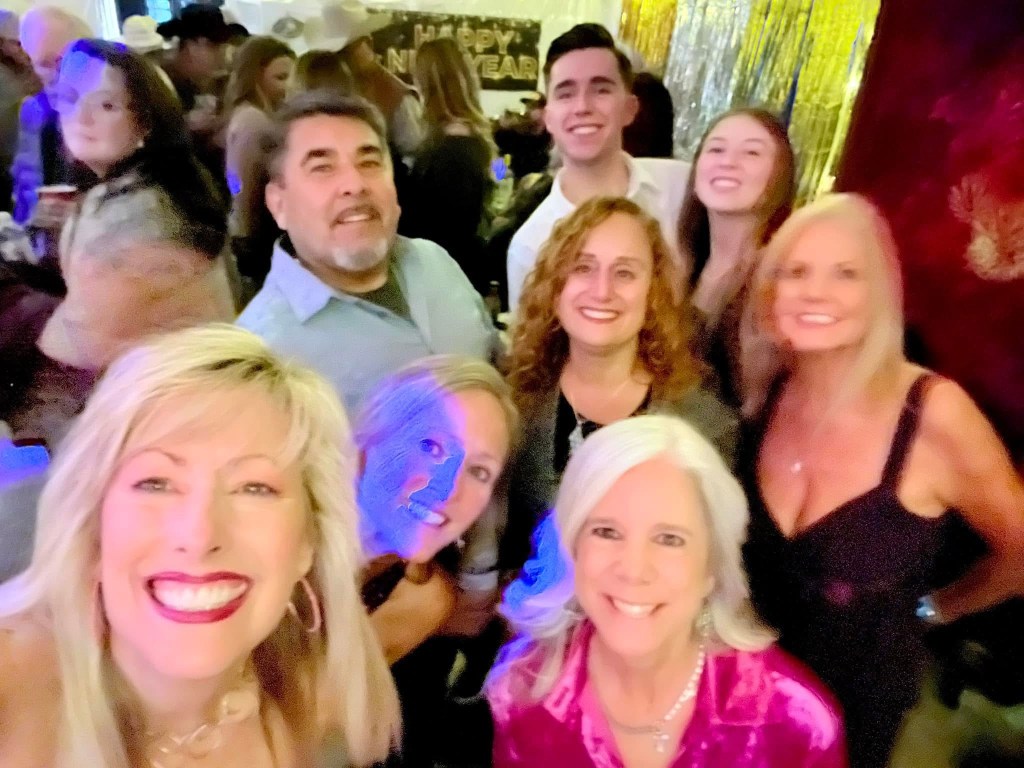We started the year off right with a Barn Dance. It was a lot of fun, but it didn’t really look like a barn to me. More like a metal garage, but the dance floor worked fine. Here’s the gang and my bestie