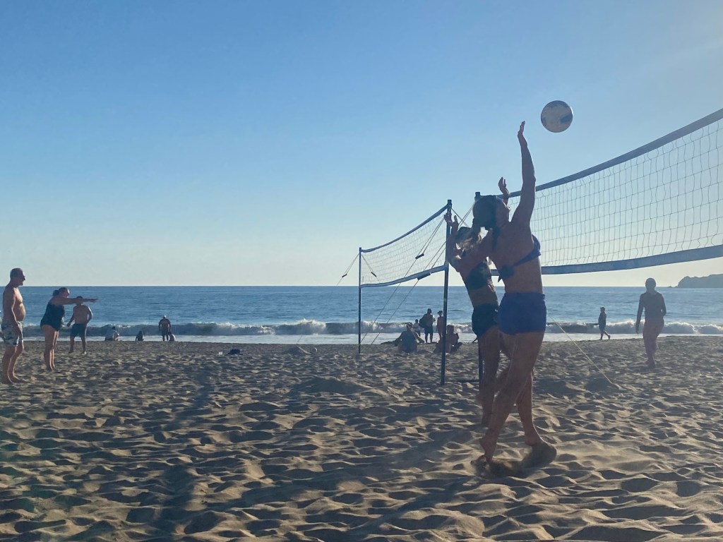 View from the hotel. You can’t see it but there were volleyball courts spread way down this beach.
