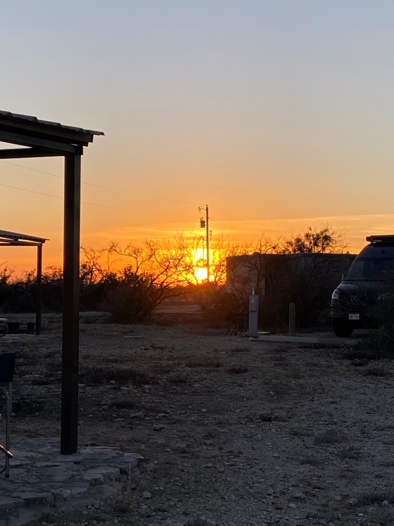 This is the Campground (where I left my favorite chair!! I’m sad about that, but no going back. I bought a cheap replacement – sorry Tim) and sunset.