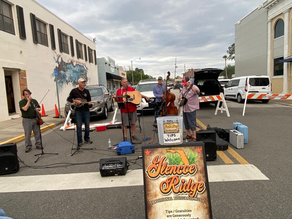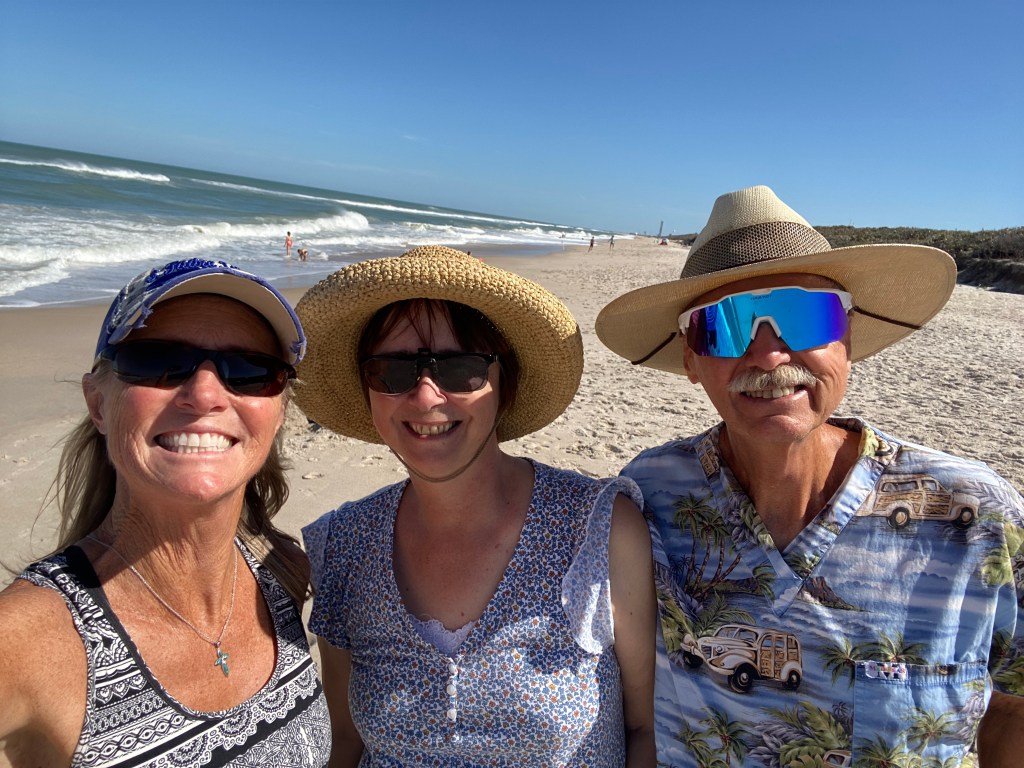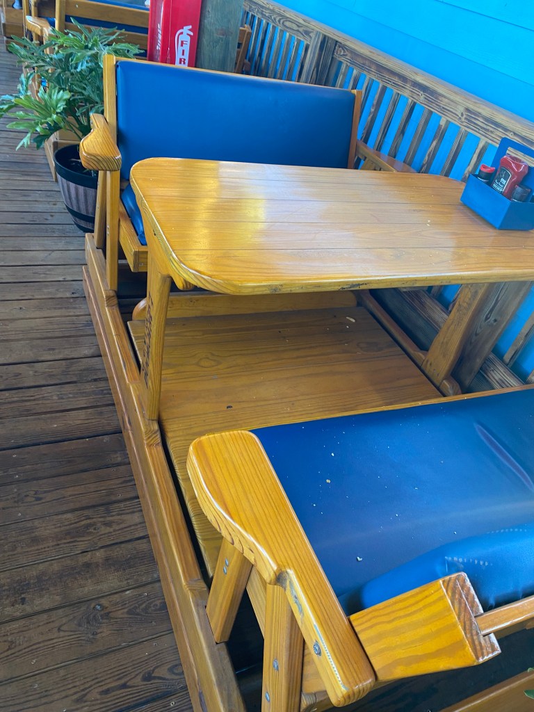 It would have been neat if a rocket was launching, but not today. SpaceX is nearby too. These are my friends Cheryl and Tom. They also took me to a restaurant in New Smyrna (the initials are BO, but I can’t remember the name). I mention this because this restaurant has rocking chair tables! I’m not sure where that concept came from (or how to take a picture to show you), but it certainly was unique.