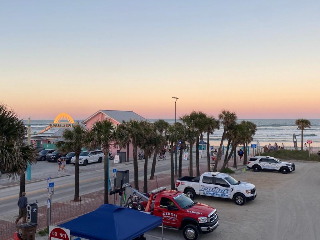 Interesting note: up and down the east coast of Florida, high schoolers are ALL on Spring Break at the same time! You can see two police cars in the parking lot picture. If I had taken a picture to the right you would have seen at least 10 more. Cops and kids everywhere!