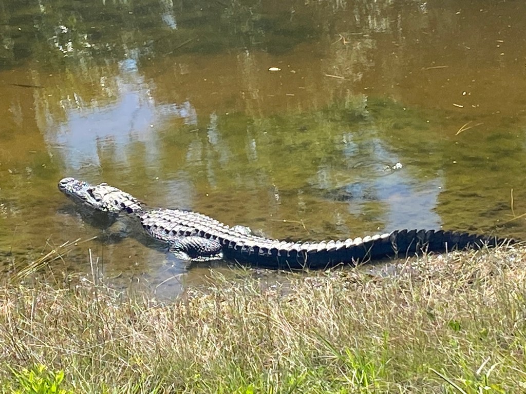 I’ve seen signs in Louisiana, Mississippi, Alabama and Florida, but no gators. That is, until I visited New Smyrna and my friends took me to Merritt Island Wild Life Refuge. It took a while, but we saw Papa Gator above, aaaannnnnd…….