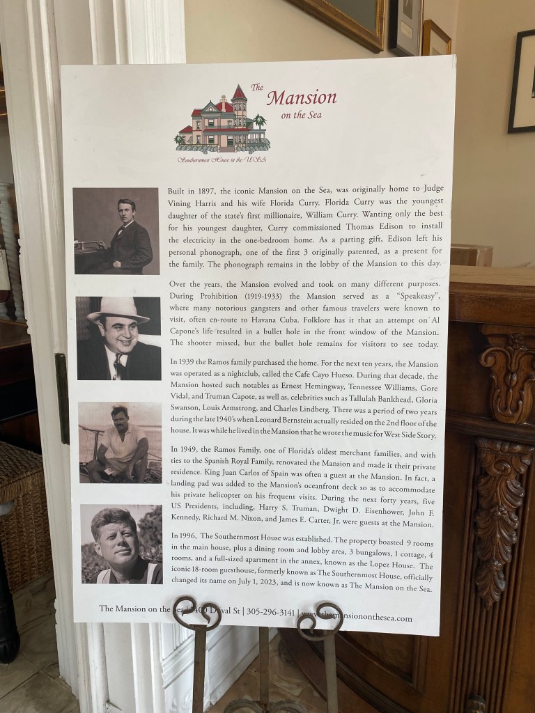 This is the Southernmost House where we stayed. It’s actually a Mansion. You can see some pretty famous people have slept here. It was a beautiful old house, with a pool we didn’t use, and a great breakfast in the morning! It is also conveniently located at the end of Duval Street (Key West’s version of Bourbon Street).