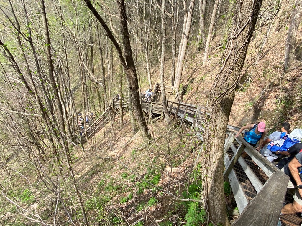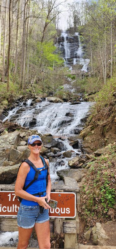 Amicalola (Tumbling Waters in Cherokee) Falls and the Appalachian Trail! I finally found some elevation gain – a whopping 875 feet! That may not seem like much, but it did include 600 stairs to get to the top of the falls
