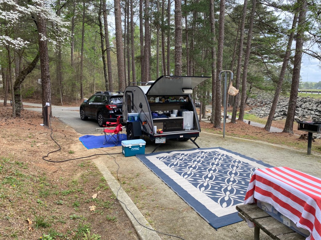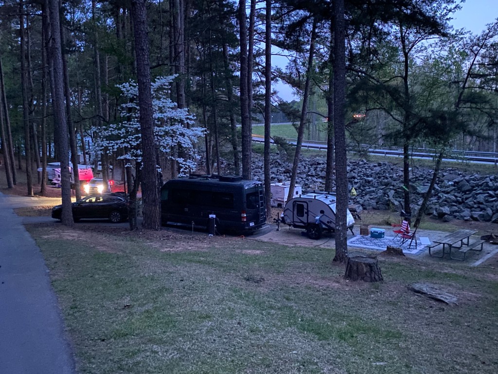 Now I’m even further north in Georgia – I had a reservation at one campsite and they called me last week to say they weren’t going to be open in time, BUT they have a ‘sister’ campsite with a couple of spots left. I jumped on it – maybe too soon, but we made the best of it.