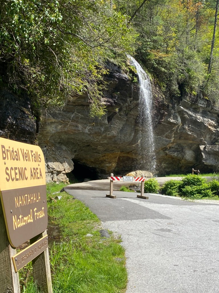 I guess you can usually drive behind Bridal Veil Falls, but it’s closed. Cute Fall but I have seen nicer ones with the same name.