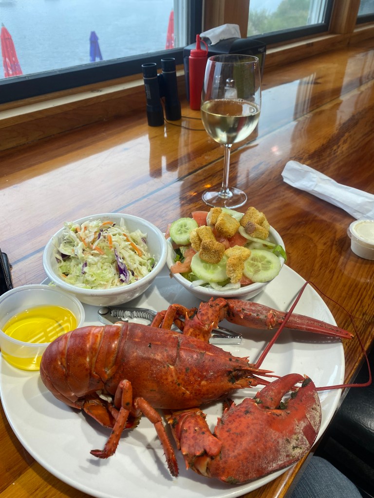 A very ‘Maine-like’ view and the lobster looks incredible, right? It was intimidating! I had no idea how to even start eating it! The waitress told me to ask help from the Lobster guys sitting at the bar behind me, but I was too proud and tackled it myself. After three trips to the bathroom to wash my hands and about an hour later (cold lobster)