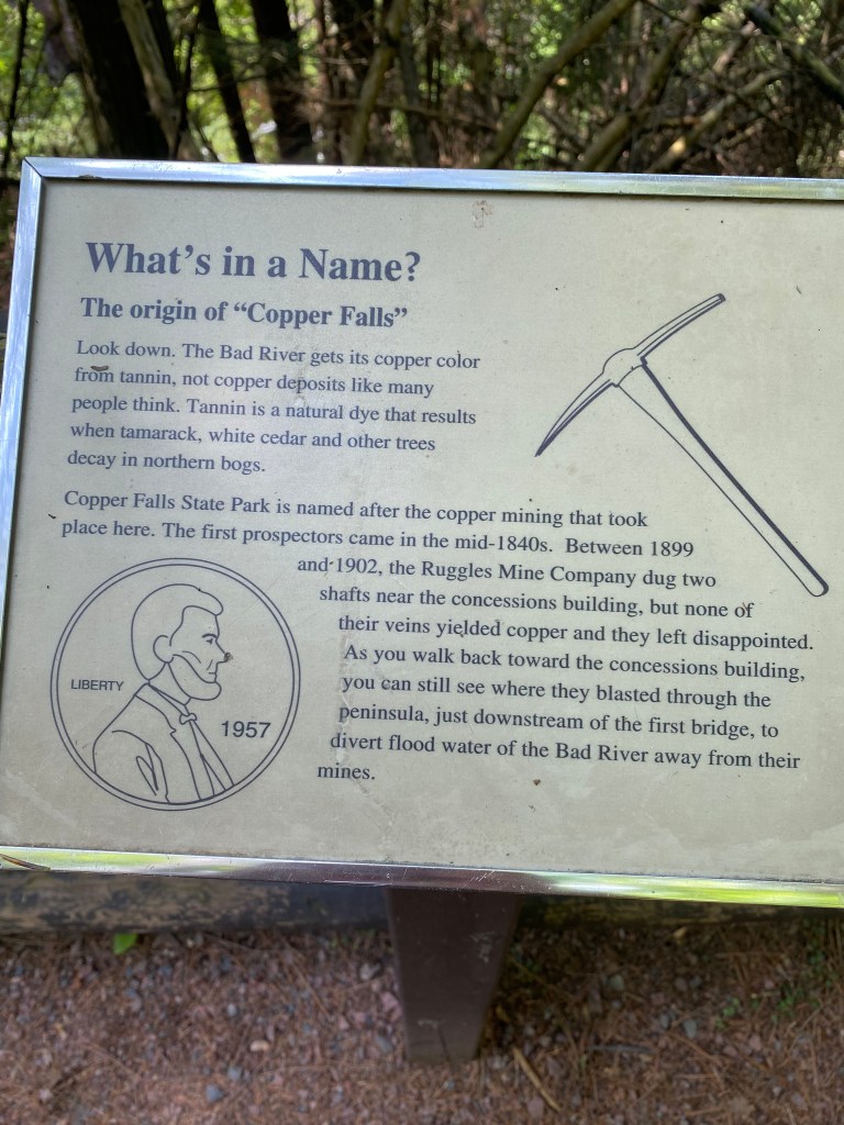 After dropping Shyla off and Escaping From New York, I had a beautiful drive through Pennsylvania (a nod to my good friend Kevin – State College, Penn State, Go Nittany Lions!), stayed one night at a client’s house (thank you Lynette!), and made my way to Copper Falls State Park in Wisconsin. You can see where the name came from