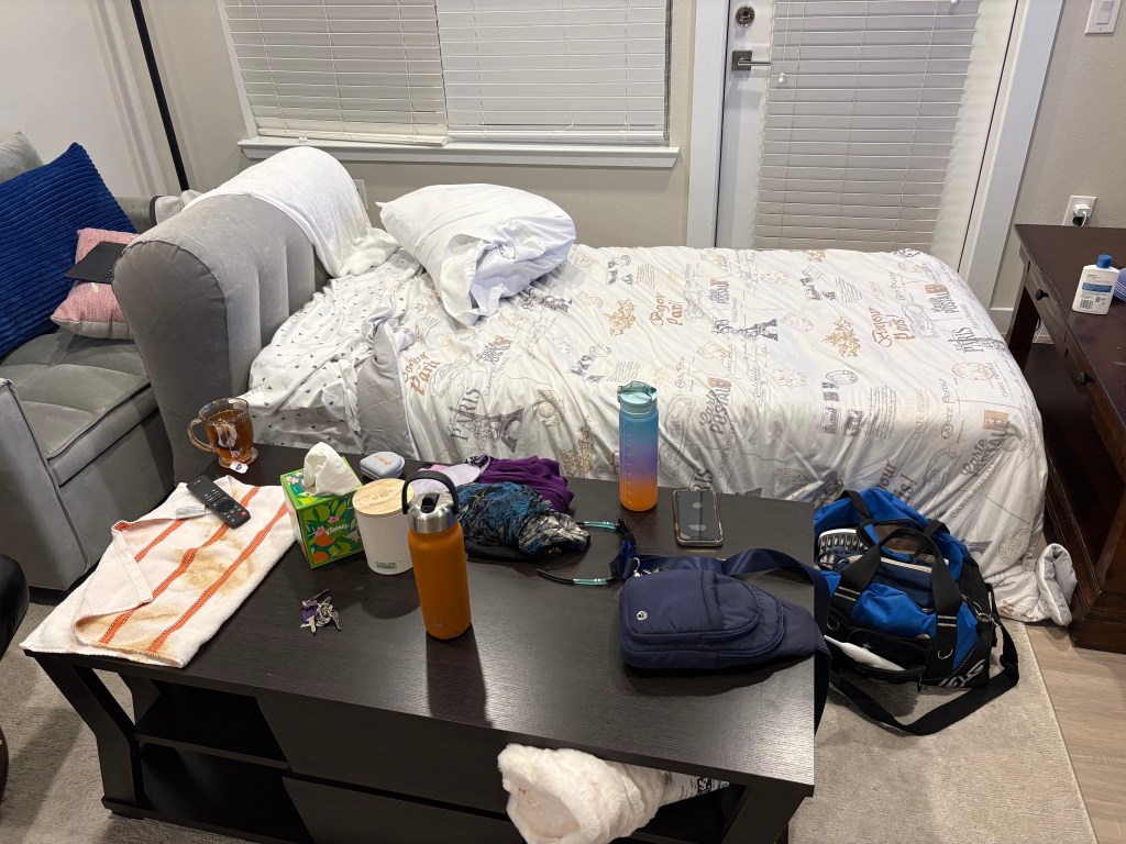 I arrived back in Colorado exactly a year after I left and have taken over my son’s living room since I can’t move back into my townhome until November.