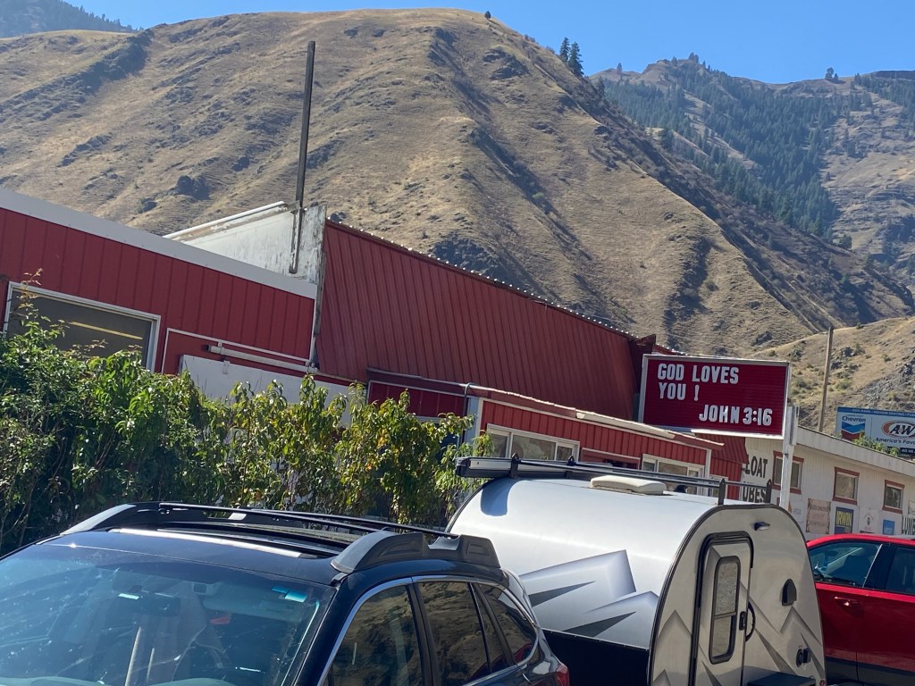 I was making my way from the Glacier area to Boise – cruising the Bitterroots, visiting the Lewis and Clark trail, and enjoying a beautiful drive through the Salmon River Canyon. Who would have thought parts of Idaho could be so pretty!? Little to no traffic, no businesses, very few houses, and a sweet curvy road to drive. All I saw was river, rocks and mountains, then in the middle of nowhere